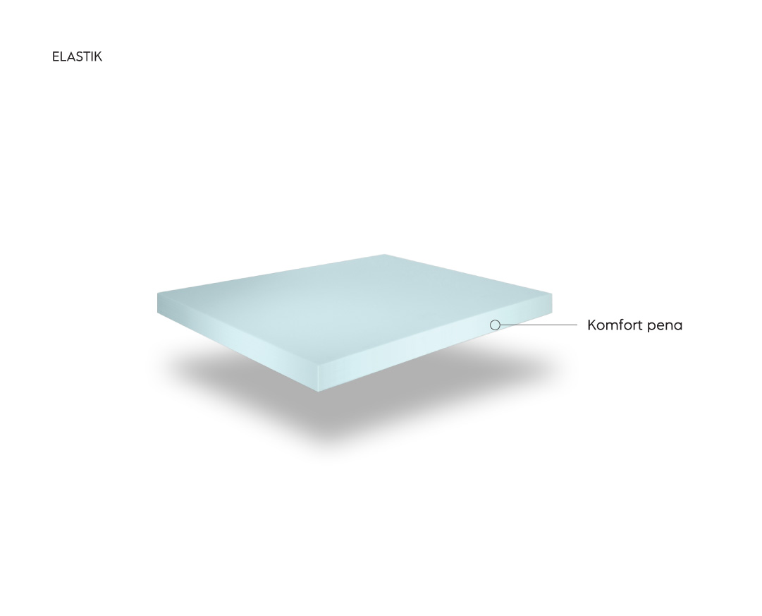 Osnovna prednost dušeka od poliuretanske pene je što imaju nesmetan protok vazduha. Pena se prilagođava obliku ljudskog tela. Pruža jaku potporu, ali uz elastičnost i mekoću. Primenom savremene tehnologije u proizvodnji poliuretanske pene postiže se otpornost, elastičnost i dugotrajnost ovih materijala. Dušek ELASTIK je urađen od hipoalergenskog materijala i Komfort pene. Idealan za mlade ljude.