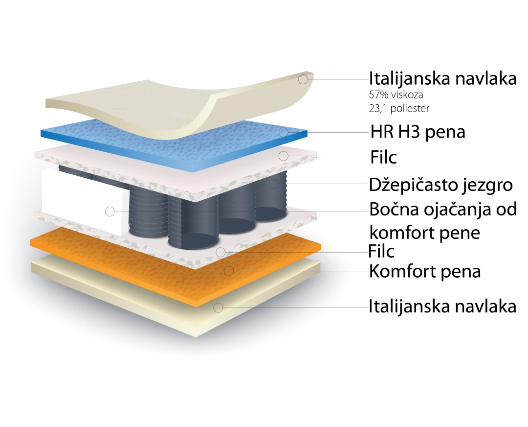| Materijal ispune: | Džepičasto jezgro + HR Pena |