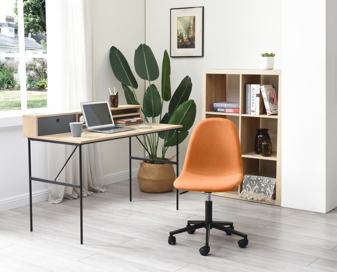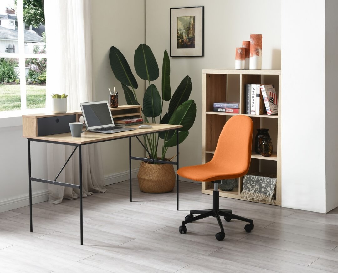 Kancelarijska stolica Iena je savršen izbor za sve koji traže kombinaciju stila, udobnosti i funkcionalnosti za svoj radni prostor. Ova moderna stolica donosi sve što vam je potrebno kako biste se osećali udobno i produktivno tokom radnog dana. Sa dimenzijama (55x47x96-107 cm), stolica Iena pruža prostrano sedište i visinu koju možete prilagoditi prema svojim potrebama, čineći je idealnom za radni sto. Materijal sedišta i naslona je kvalitetan štof, pružajući udobnost i podršku. Konstrukcija fotelje Iena je napravljena od metala, što je čini izdržljivom i stabilnom, a nosivost od 120 kg osigurava da je pogodna za različite korisnike. Stolica je dostupna u živahnom narandžastom dezenu, koji će osvežiti vaš radni prostor i dodati dozu energije. Ova boja simbolizuje kreativnost i inspiraciju, čineći je idealnim izborom za produktivno okruženje. Kancelarijska stolica Iena je savršen spoj stila i funkcionalnosti za sve koji žele da se osećaju udobno i inspirisano tokom radnog dana. Bez obzira da li radite od kuće ili u kancelariji, ova stolica će vam pružiti podršku i udobnost, istovremeno unoseći boju i stil u vaš radni prostor.