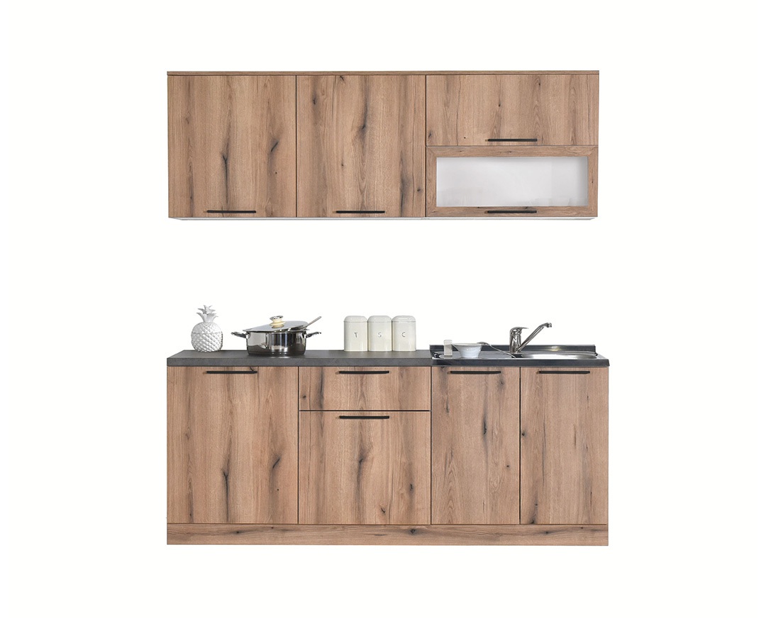 Nova blok kuhinja Comfort 200 u novim dezenima – artisan i snežni hrast. Prilikom montaže je moguće odabrati da li će se element sa sudoperom nalaziti sa leve ili desne strane.