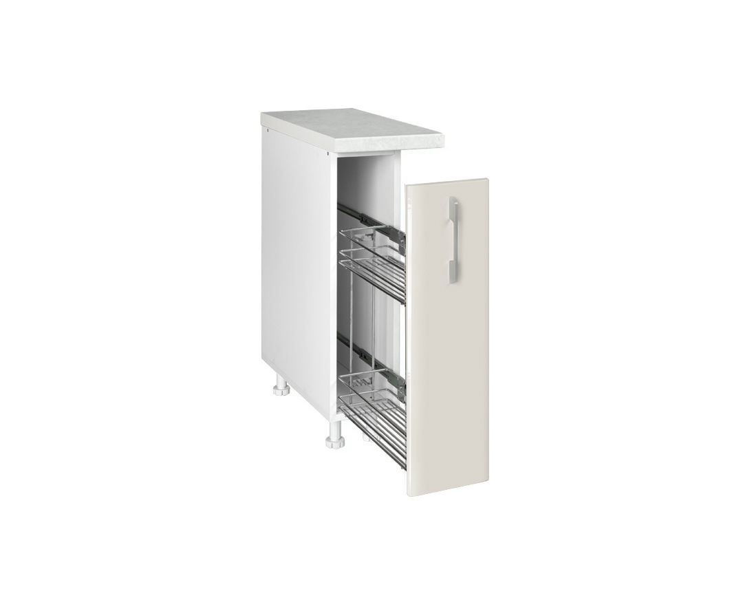 IN MDF D 20 je donji kuhinjski element koji zauzima veoma malo prostora, a poseduje izuzetnu upotrebnu vrednost. U pitanju je komad nameštaja izrađen od kvalitetnog medijapana, sa izuzetnom hromiranom konstrukcijom, koji dolazi u velikom broju dezena i nezaobilazan je element u svakoj savremenoj kuhinji. Može se koristiti kao bife za piće, ili za skladištenje velikog broja flaša i tegli. **NAPOMENA** Svi elementi iz programa Kuhinja IN MDF projektovani su tako da se mogu kombinovati u postavkama kuhinja sa bilo kojim drugim elementom Kuhinja IN MDF.