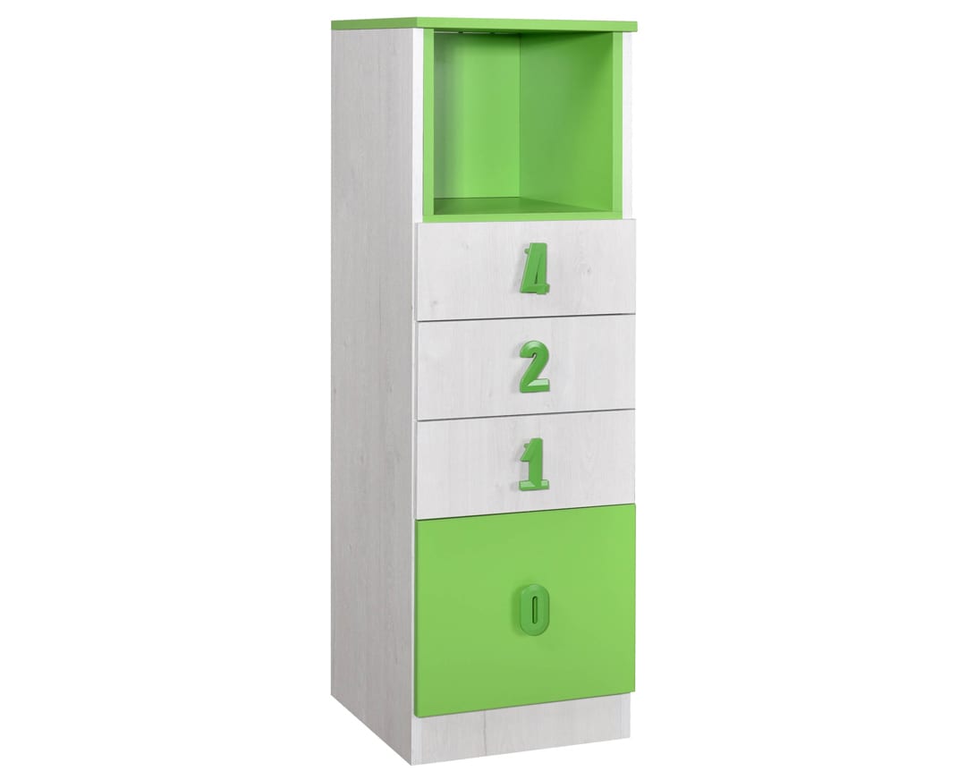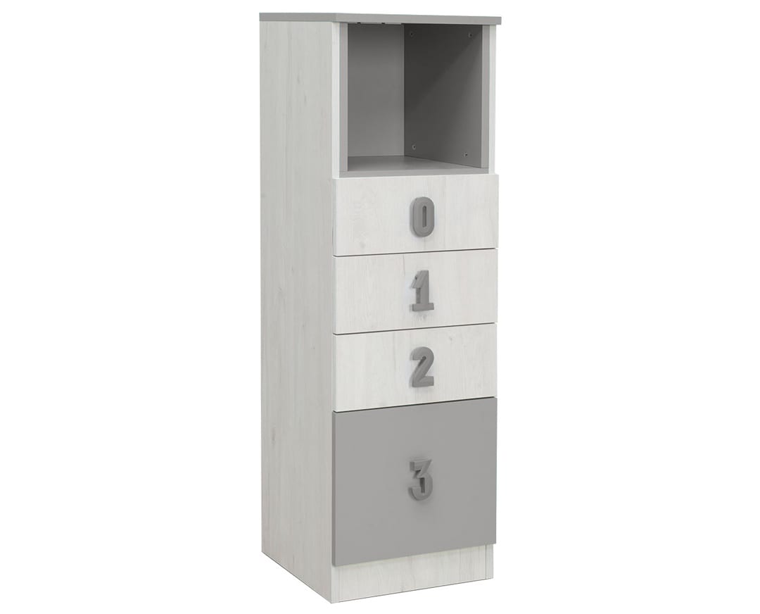 Praktična, Numero komoda 4F Niša, sa četiri prostrane fioke predstavlja dodatni prostor za odlaganje i sjajno će se uklopiti u ambijent dečije sobe. Gornja površina komode se može iskoristiti za čuvanje dekorativnih predmeta, stone lampe i raznih uspomena. Komoda je izrađena od univera debljine 18mm.