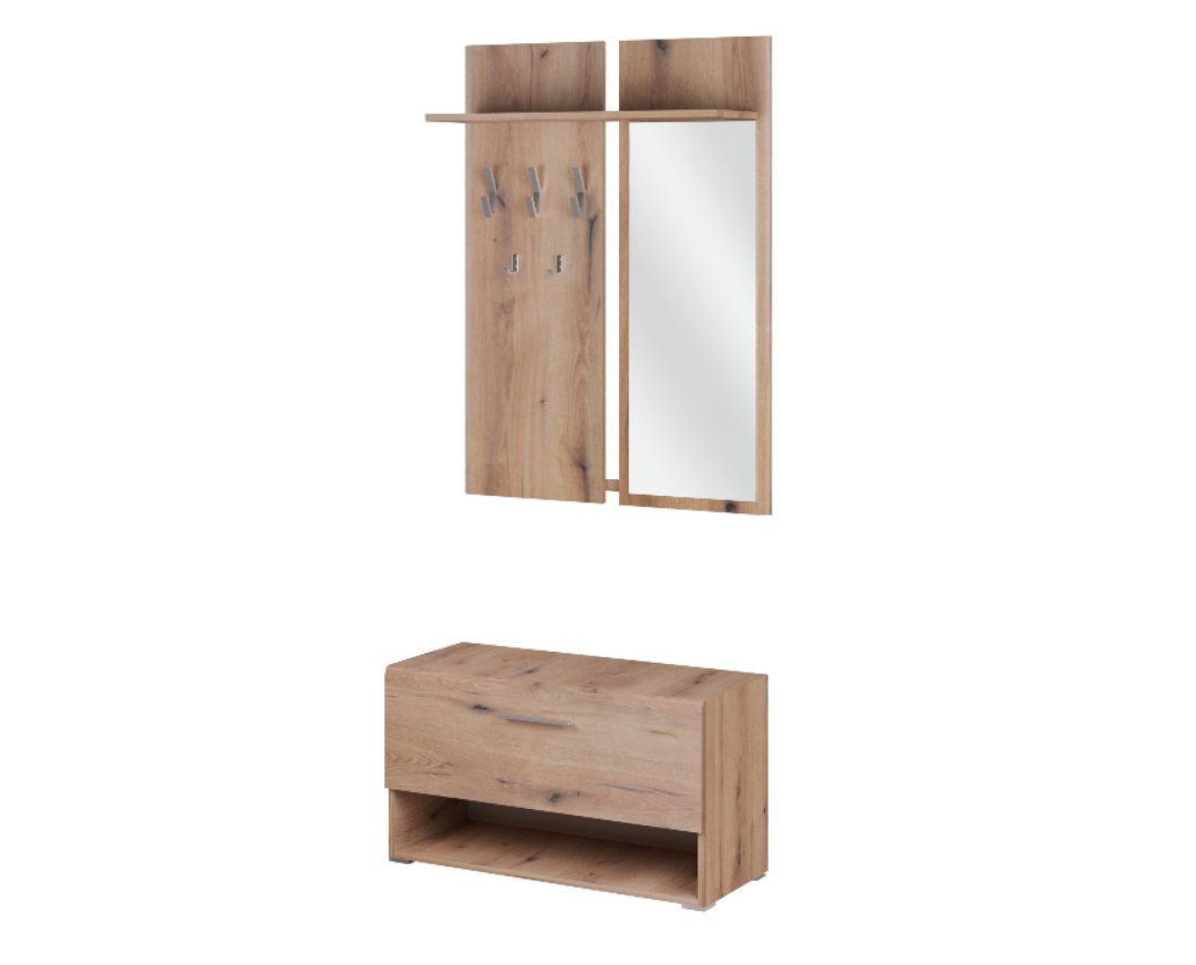 Predsoblje DONATELO izrađeno od univera 18mm. Predstavlja idealno rešenje za Vaše predsoblje. Gornji deo predviđen je za odlaganje odeće, a donji deo je komoda sa prostranim prostorom. Predsoblje DONATELO možete pored kućne upotrebe koristiti i u kancelariji.